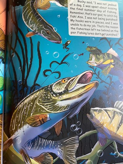 Sammy Spinner, an eager fishing bait, gets plopped into a tackle box alongside Bucky Bucktail, Francis Frog, and Suki Suick with one goal, to catch big fish. He sees shores lined with pine trees and large loons swimming on the water. He hears giggling eagles sitting in woody nests and beavers' thick tails building dams.